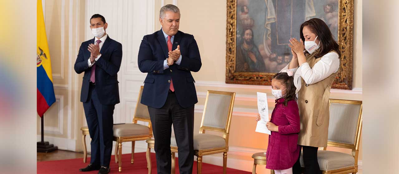 El Presidente Duque manifestó que esta legislación “es la demostración más grande de que en Colombia se pueden alcanzar triunfos colectivos, que más allá de pertenecer a partidos, a organismos, a entidades, hay algo más sublime y es el propósito de país, y sobre todos, el propósito de proteger y de tutelar los derechos de los niños, niñas y adolescentes de nuestro país”.