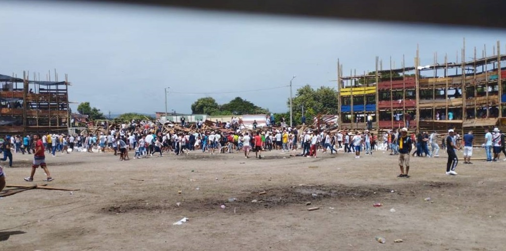 Un gran sector de la improvisada plaza de toros del mencionado municipio se desplomó en medio de un evento taurino como parte de las celebraciones de San Pedro y San Juan.