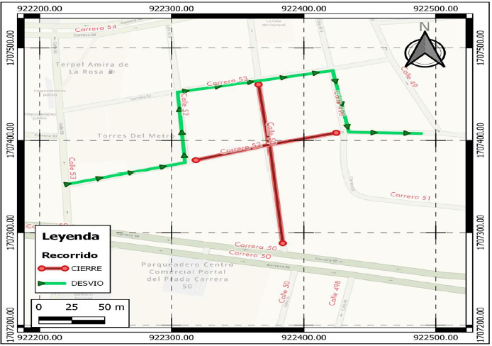 — Los conductores que transitan por la carrera 38 o calle 72 hacia el norte de la ciudad (de la carrera 38 hacia la Vía 40), tomarán la calle 73 hasta la carrera 43, donde girarán la izquierda hasta llegar la calle 74, cruzarán a la derecha para seguir hasta la carrera 48, doblarán a la derecha, hasta retomar la calle 72 y continuar hacia su destino.