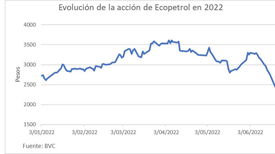 Al cierre de este jueves 23 de junio, la acción de Ecopetrol mostraba su caída más pronunciada en un mismo año (13,61%) debido a la cotización internacional del Brent, el cual se cotizó a 110,03 dólares por barril, una disminución del 1,51%.