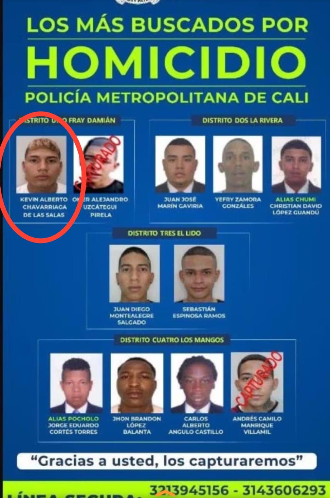 Es de anotar que este individuo es requerido presuntamente por hechos ocurridos en el presente año en la ciudad de Cali, donde se le señala de propinar varias heridas con arma blanca a una mujer, ocasionándole la muerte.