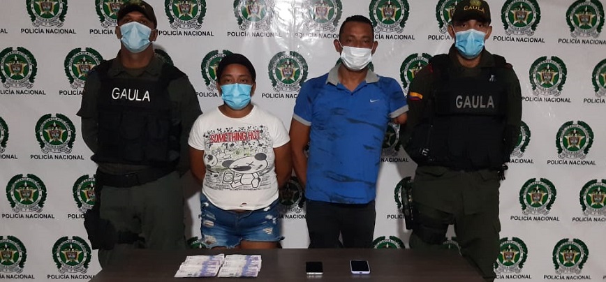 En momentos que se disponían a recibir 30 millones de pesos, producto de la extorsión a un comerciante en el centro de Barranquilla, una pareja, entre ellos una persona en condición de discapacidad, fue capturada por miembros del grupo Gaula.