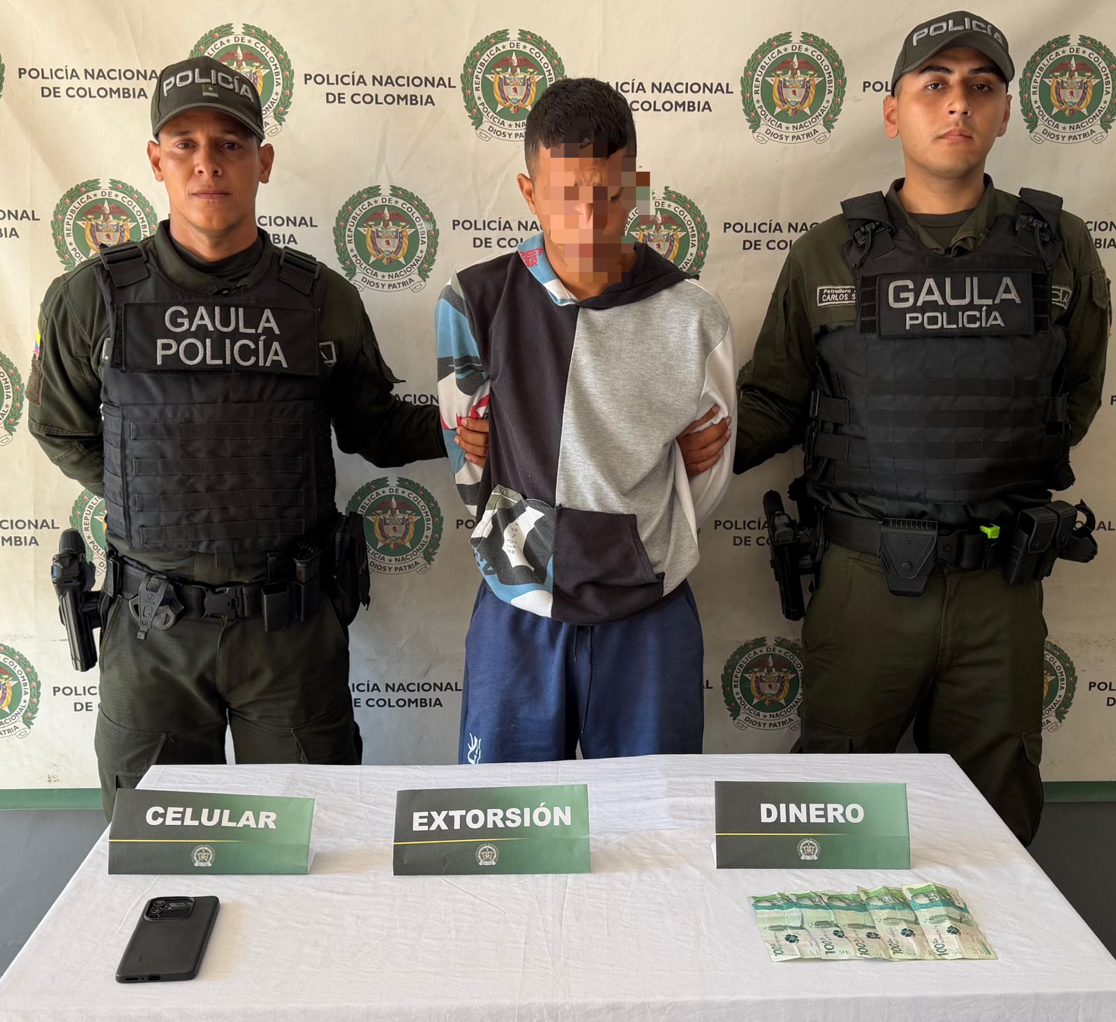 De acuerdo con la investigación, la víctima, un comerciante del municipio, venía siendo intimidada mediante llamadas telefónicas y mensajes de WhatsApp, en los que le exigían dinero a cambio de permitirle continuar con su actividad comercial y no atentar contra su vida ni la de sus trabajadores.