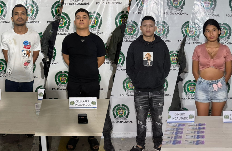 Los capturados fueron identificados como supuestos miembros de las estructuras criminales Bloque Resistencia Caribe y Los Costeños, dos grupos delincuenciales que mantienen presencia en varios sectores del norte de la ciudad y que, según la investigación, venían extorsionando locales en barrios como Ciudadela 20 de Julio, Las Nieves, Rebolo, Los Almendros, Los Girasoles y San Roque.