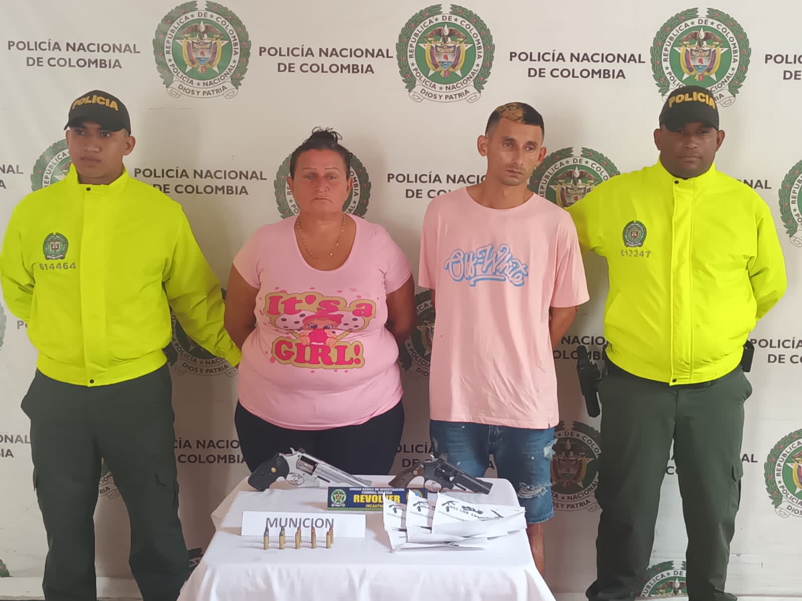 Los operativos se realizaron mediante diligencias de allanamiento y registro en el barrio San Vicente del municipio de Soledad, logran las capturas en flagrancia de alias el “veneco” de 31 años y alias “la mona” de 52 años de edad, incautándoles dos armas de fuego tipo revólver calibre 38 con 10 cartuchos para la misma y ocho panfletos alusivos a un grupo delincuencial.