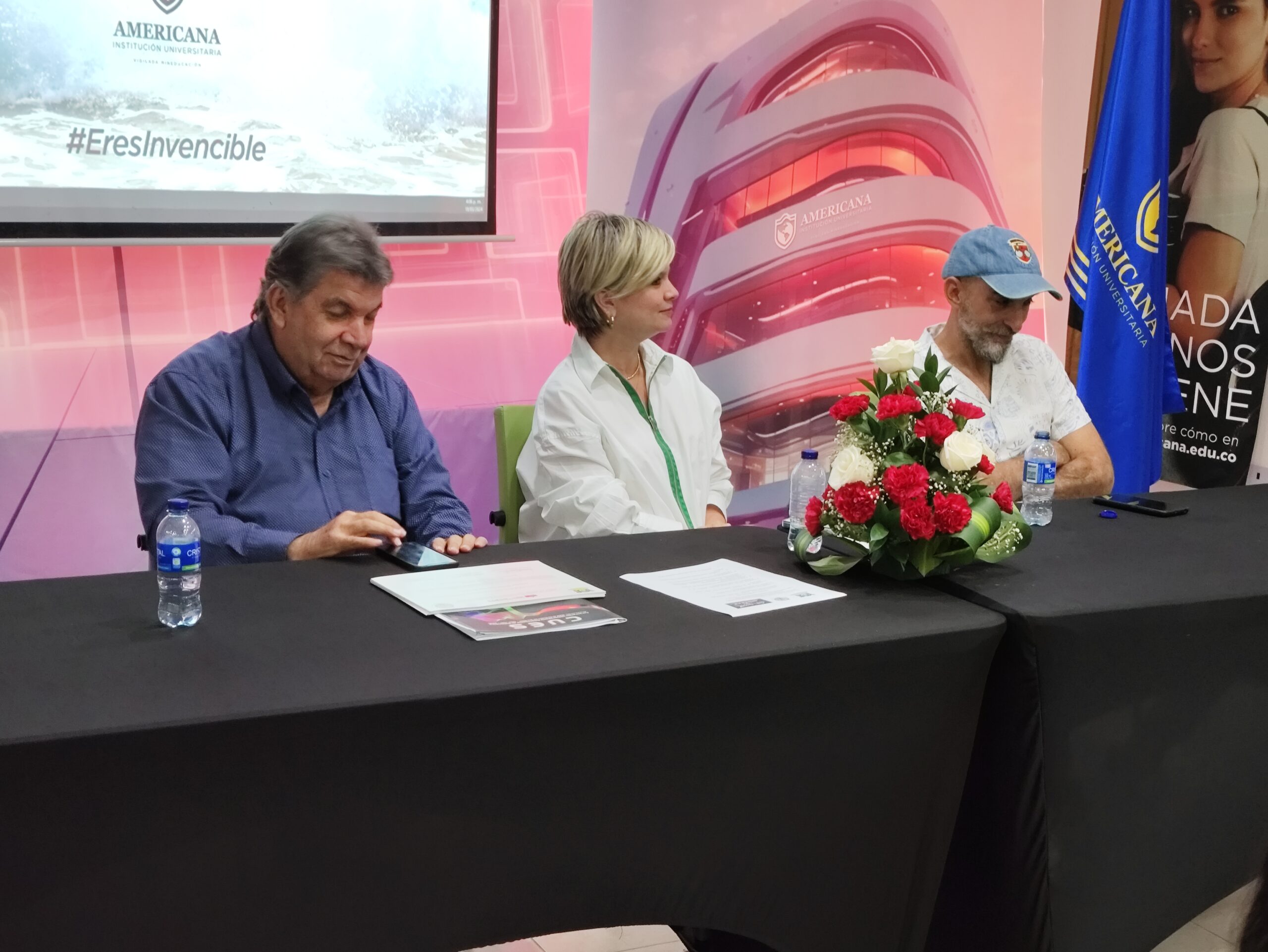 La mesa estuvo conformada por Fernando Navarro representante de la Institución Universitaria Americana y la Gerente de Carnaval SAS Sandra Gómez.