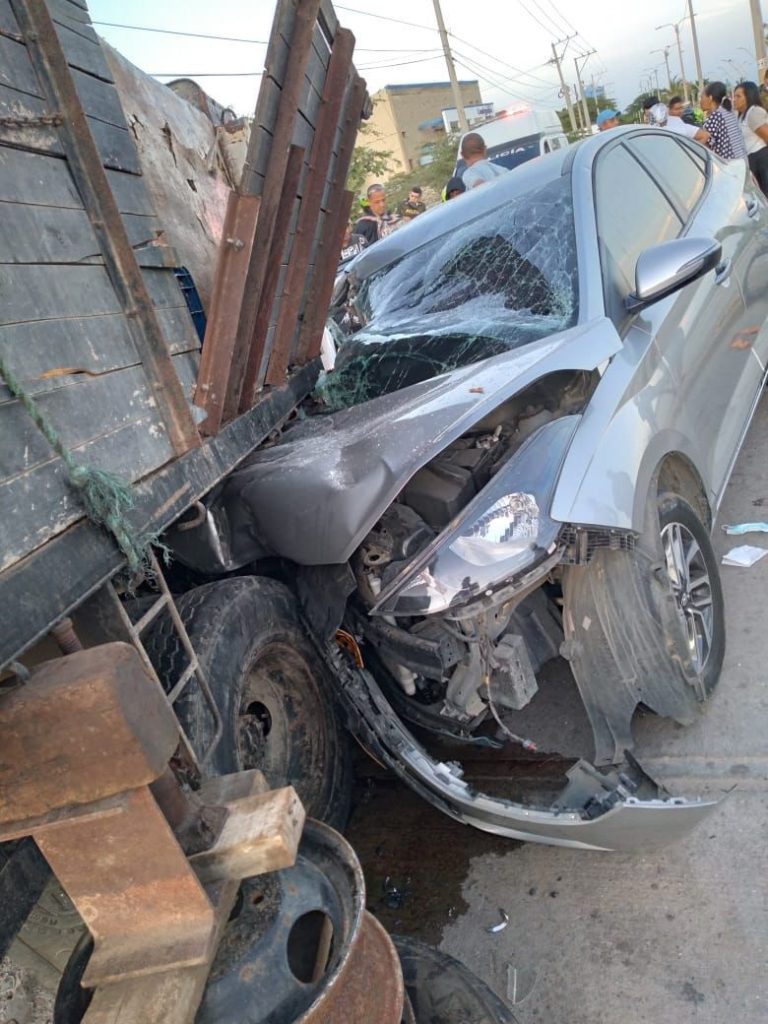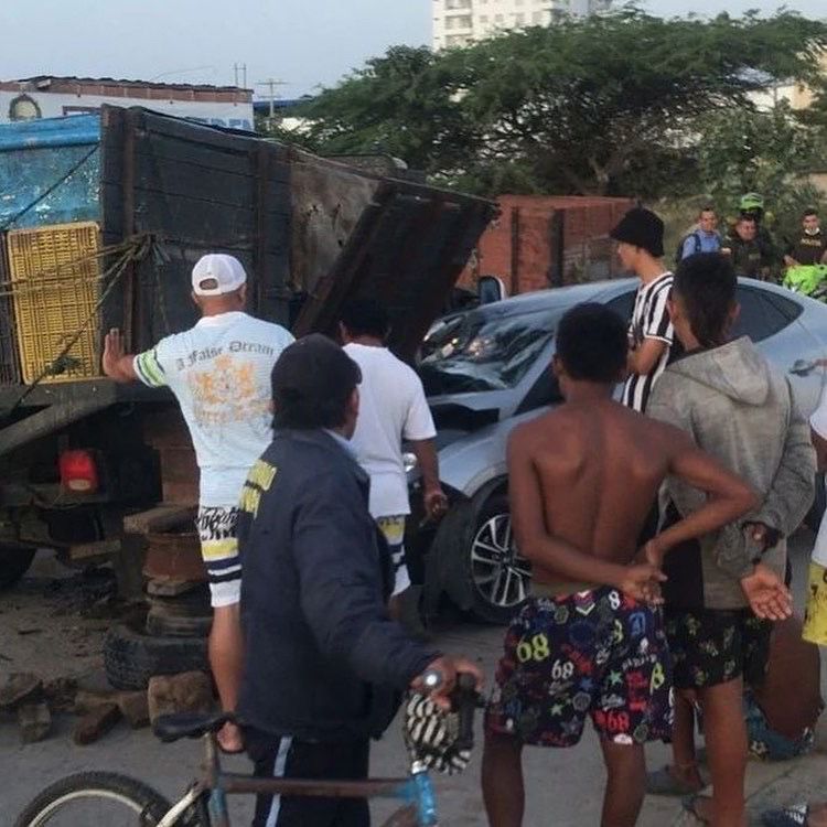 Se accidentaron a la altura de la calle Primera en la Avenida la Marina por el sector de Anas Maí contra un camión 350, que estaba cargado de pescado e iban saliendo de un parqueadero cuando chocaron con la parte de atrás del camión impactando el automóvil del lado derecho, carro donde estaba sentado Oscar Gamarra quien fue quien recibió la mayoría de los golpes.