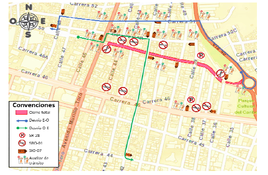 • Los que van sentido oeste dirigirse hacia Carrera 4A – Carrera 5C – desvía hacia Calle 34b – Carrera 5A hacia Carrera 5C o Carrera 4A.