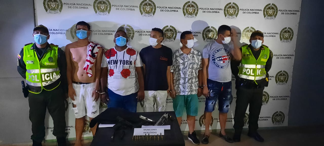 En una vivienda en el barrio San Isidro fueron capturados por miembros de la Policía Metropolitana de Barranquilla, Rigoberto Arturo Córdoba Díaz, de 34 años; Wilmer Jhoanny Lozano García, de 25 años; Willians Rafael Figueroa Córdoba; Yan Hernández, de 27 años; Santiago Andrés Díaz, de 19 años de edad.