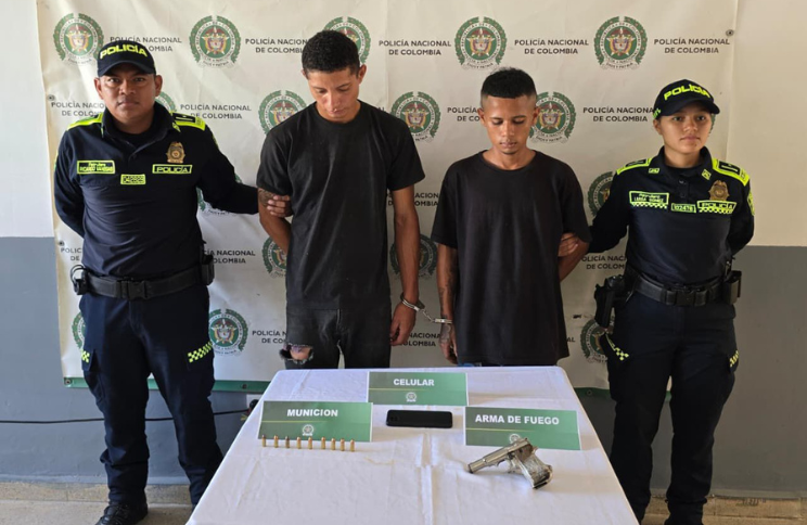 El operativo se desarrolló en la calle 27 con carrera 3 del barrio Nuevo Horizonte, tras una llamada ciudadana que alertó a la Policía sobre la presencia de dos sujetos armados en la zona. Al practicarles un registro, los uniformados hallaron en su poder una pistola calibre 7.65 mm con un cargador y nueve cartuchos de los calibres 7.65 mm y 9 mm, además de un teléfono celular.