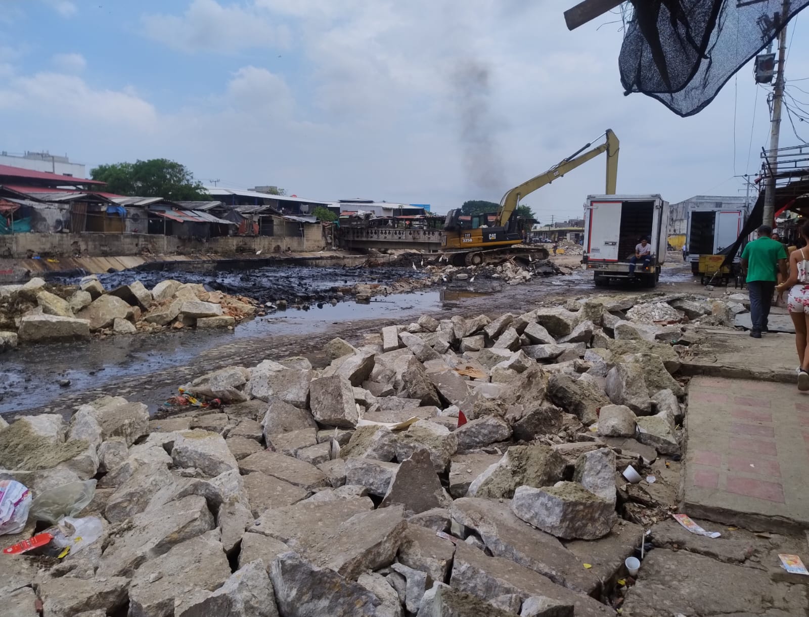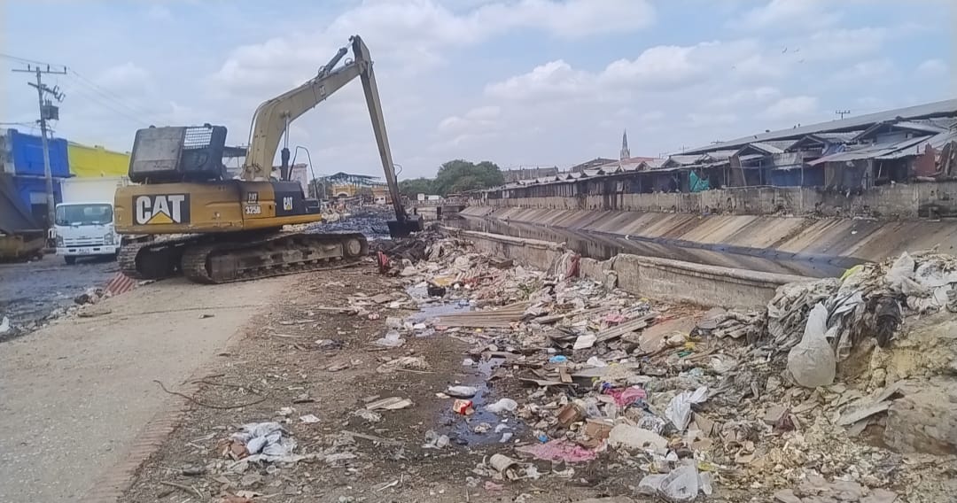 Los trabajos que se ejecutan estos momentos es la demolición del pavimento y se inició el dragado del canal del caño del mercado, el cual esta colmatado de basuras.