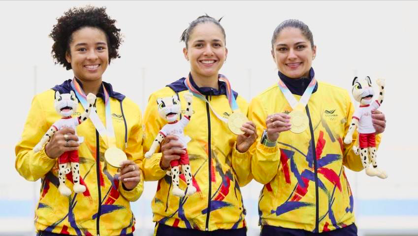 La primera medalla de oro llegó con el equipo femenino de velocidad compuesto por Yarli Quiceno, Valeria Cardozo y Juliana Gaviria, quien se impuso en la final al equipo de Chile.