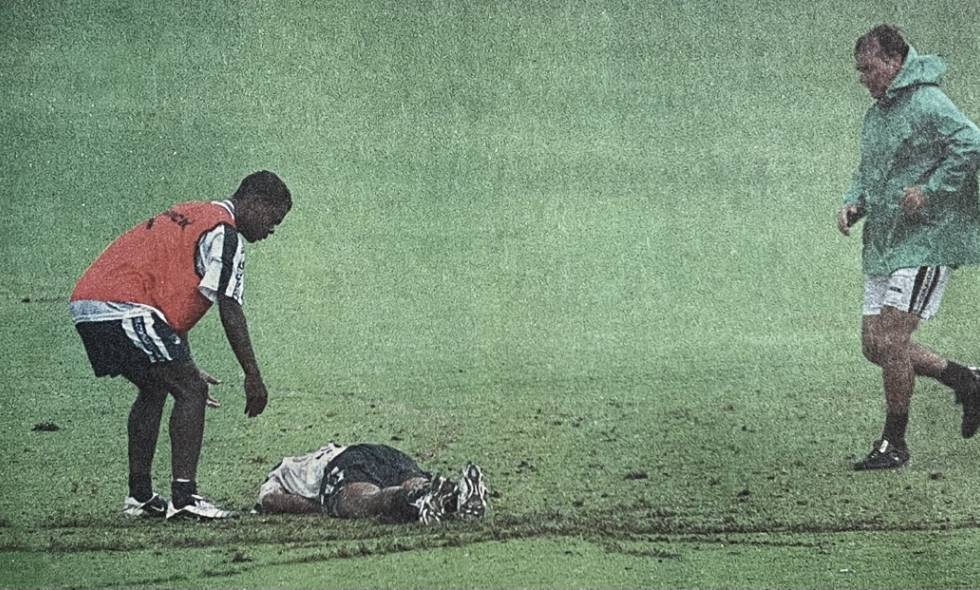 El resto de los futbolistas estaban también tendidos en la mojada grama por el duro impacto que segundos antes se había escuchado, e instantes después algunos comenzaron a pararse, aún aturdidos por la situación, mientras observé que dos de ellos -‘Carepa’ y Giovanni Córdoba- no se reponían.