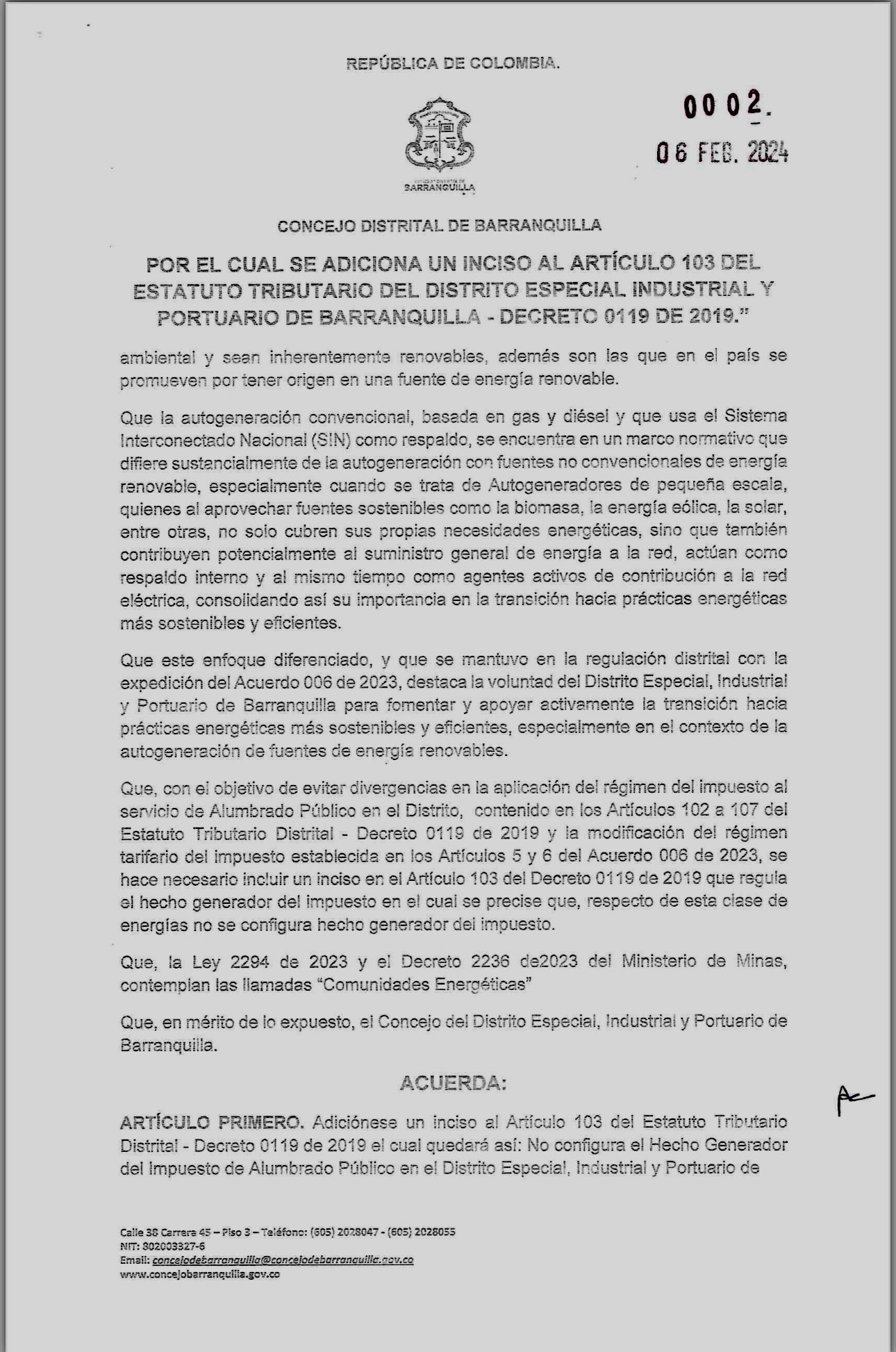 El impuesto al alumbrado público solo será para grandes empresas autogeneradoras: alcalde Char