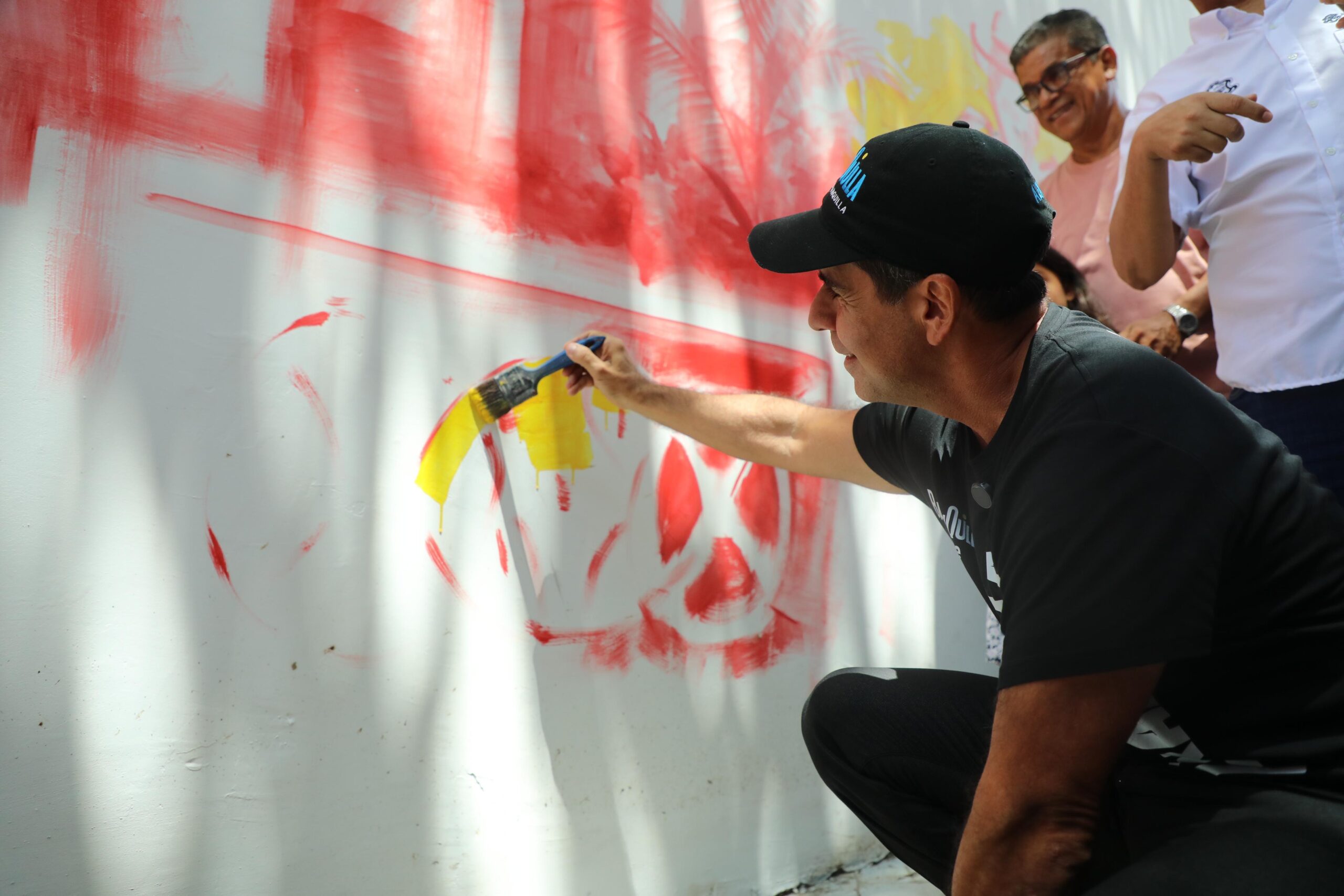 El mandatario distrital visitó al equipo artístico que interviene los murales de este espacio recuperado por la Alcaldía de Barranquilla.