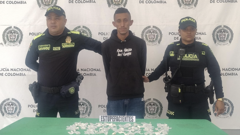 Unidades del servicio de Policía orientado a las personas y a los territorios en medio de labores de patrullaje, registro y control, lograron la captura en flagrancia de una persona por el delito de Fabricación, Tráfico o Porte de Estupefacientes en el barrio Los Laureles de esta ciudad.