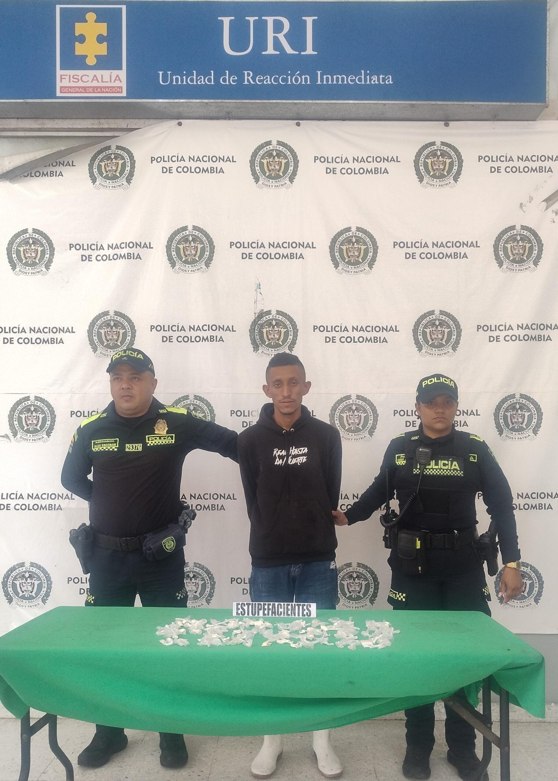 De inmediato, se le informaron sus derechos como persona capturada y fue trasladado a las instalaciones de la Fiscalía General de la Nación para ser puesto a disposición por el delito de Tráfico, Fabricación o Porte de Estupefacientes.