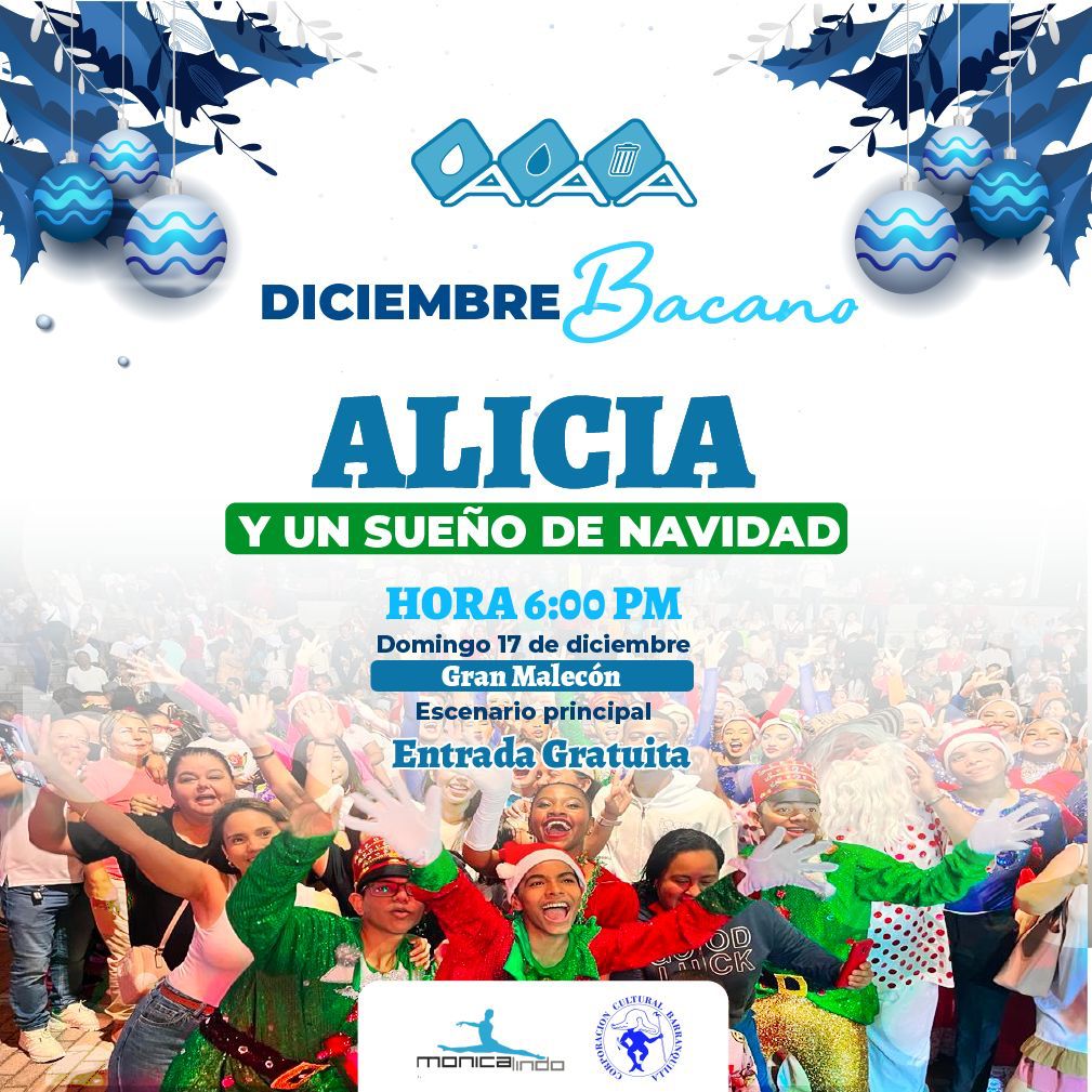 A partir de las 6:00 de la tarde de este domingo 17 de diciembre, quienes estén en la ciudad de Barranquilla podrán disfrutar del show de navidad gratuito que ofrecerá la empresa Triple A en el Gran Malecón del Río, en el marco de su toma navideña a la ciudad y los municipios donde opera.