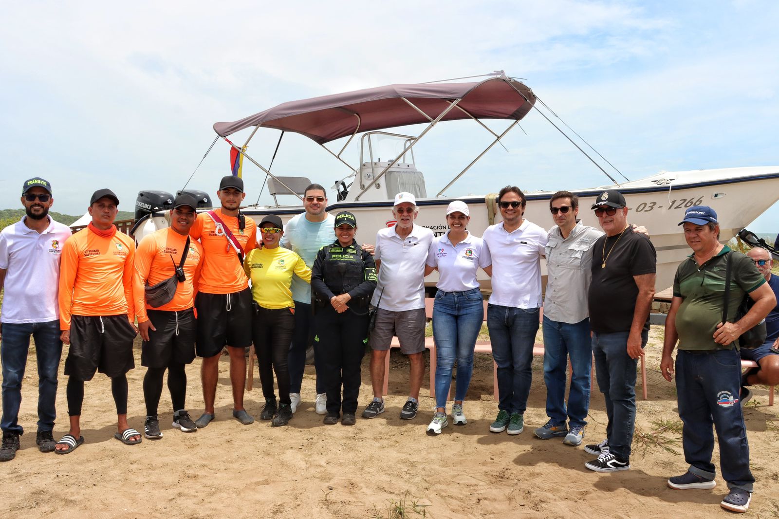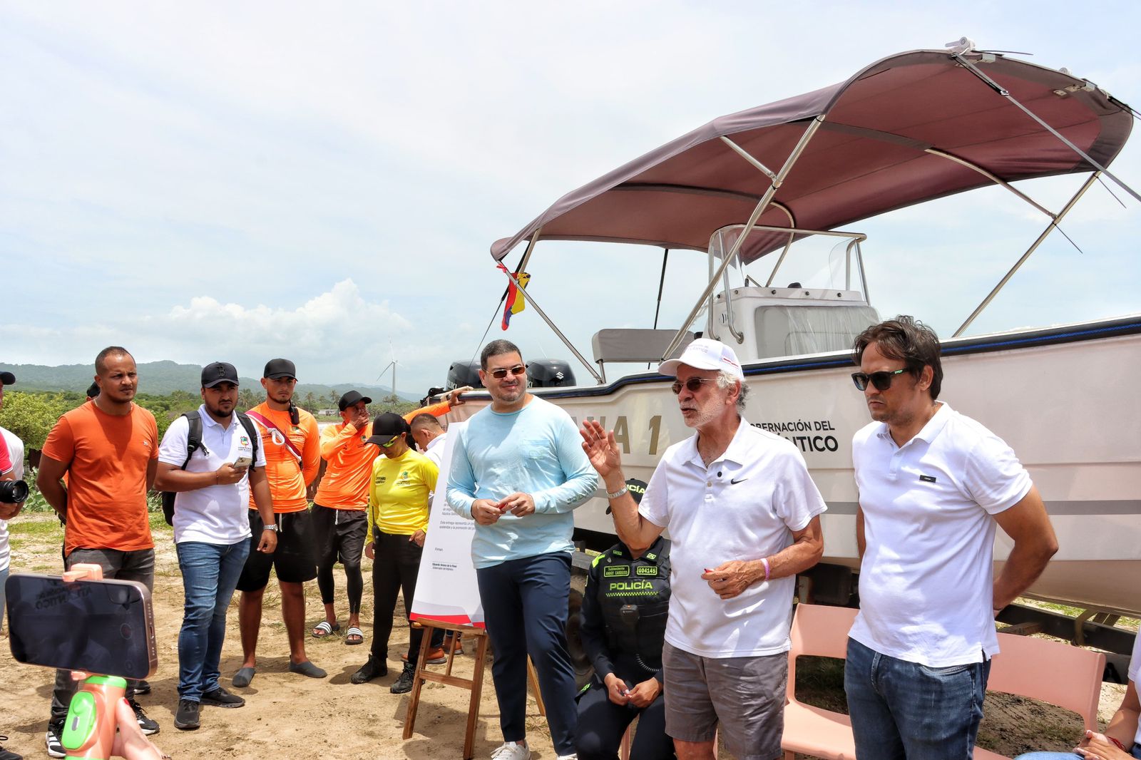 La jornada continuó en la duna principal de Salinas del Rey, donde la Gobernación entregó un bote de seguridad tipo consola central, de 25 pies de eslora, con doble motor y capacidad para 12 personas. El equipo incluye elementos de rescate y salvamento que permitirán una atención oportuna ante emergencias en mar abierto.