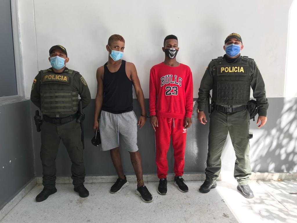 La Policía capturó a los presuntos responsables de este crimen, identificados como: Junior José Jaraba Chola, de 18 años, quien registra 3 anotaciones judiciales: 1 por porte ilegal de armas y 2 por porte de estupefacientes; y Bairon Antonio Moreno De La Hoz, de 20 años, quien posee cinco anotaciones: 2 por porte ilegal, 2 por daño en bien ajeno y 1 por secuestro, según indica el reporte de la Institución. Fueron llevados a la URI.