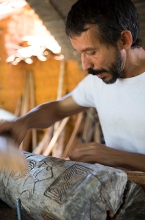 Cadena es un artista que hace más de 30 años trabaja la talla en madera, en su obra promueve y exalta los rasgos de la raza negra homenajeando a la mujer afrodescendiente y en sus esculturas la destaca. Entre las herramientas que utiliza para dar vida a sus obras, se encuentran materiales reciclables como maderas finas y duras, combinadas con metal y hojas de árboles.