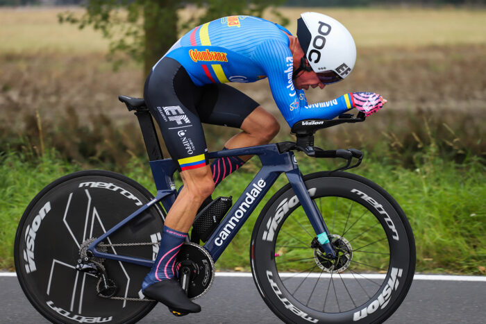 “Muy dura la crono, muy plana, una crono de mucha posición, la aerodinámica es super importante. Si vemos los mejores corredores todos son especialistas, de 70, 75 kilos que realmente van muy fuertes en el plano. Se necesitaba mucha potencia”, dijo el colombiano de 34 años, quien completa 10 participaciones consecutivas en campeonatos del mundo.