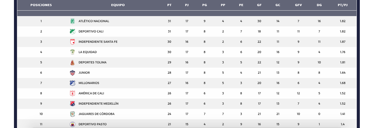 La ausencia más notoria es la de su goleador Miguel Ángel Borja, quien se recuperó de una lesión y fue reservado para el juego del próximo jueves por la Copa Libertadores ante Bolivar de La Paz en el Metropolitano Roberto Meléndez.