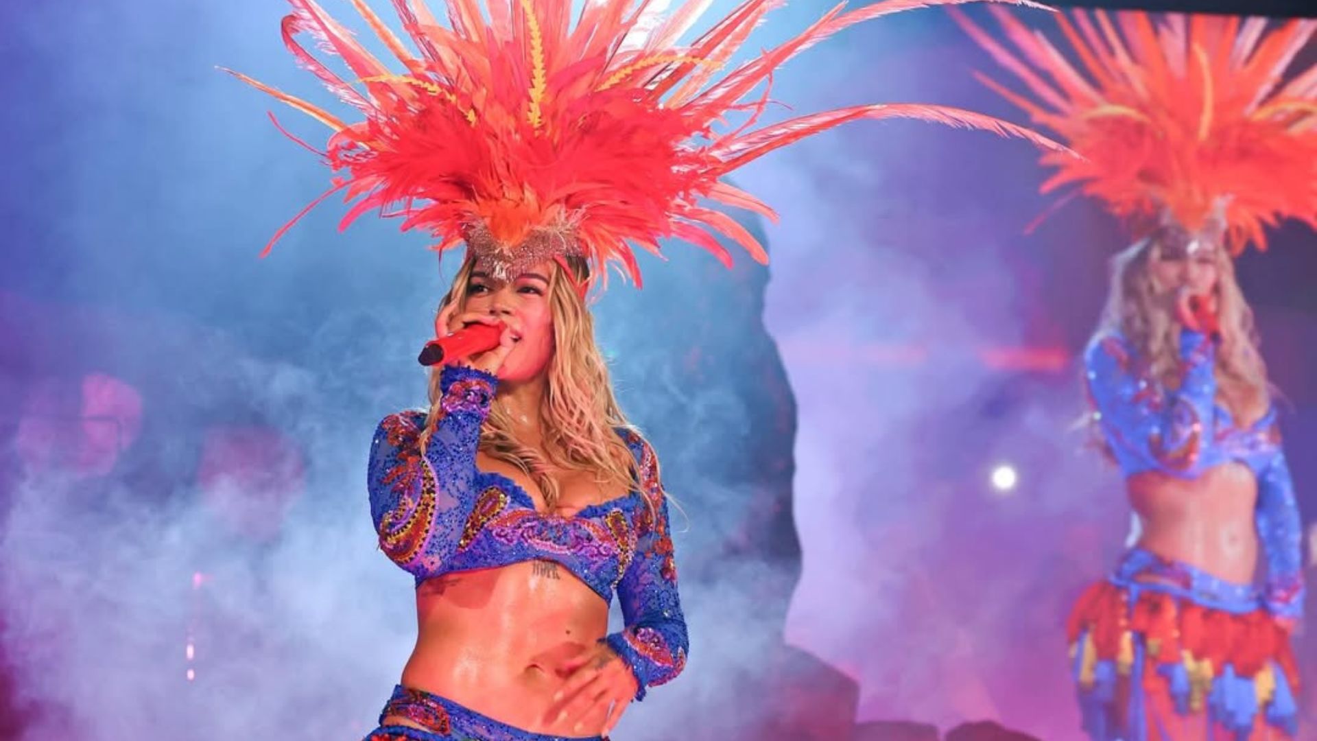 El show inició con un video conceptual que narraba la historia de una mujer indomable que recupera su poder, dando paso a una puesta en escena ambientada en una caverna iluminada con luces neón. Allí apareció la ‘Bichota’ interpretando Latina Forever, marcando el comienzo de una noche que combinó sensualidad, fuerza escénica y una narrativa de empoderamiento femenino y cultural.