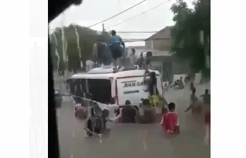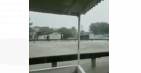 En el barrio El Carmen en la carrera 20 con calle 58 un bus con pasajeros a bordo, fue arrastrado por las aguas, el automotor en su arrastrada por las aguas se llevó por delante una moto que estaba parqueada en la vía.
