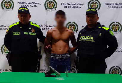 Inmediatamente se emprende la persecución que terminó con la captura de este sujeto a quien al practicarle un registro personal le hallaron en su poder, un arma de fuego tipo pistola de fabricación industrial, de inmediato fue capturado y por el presunto delito de Fabricación, tráfico, porte o tenencia de armas de fuego, accesorios, partes o municiones y dejado a disposición de la Fiscalía General de la Nación.