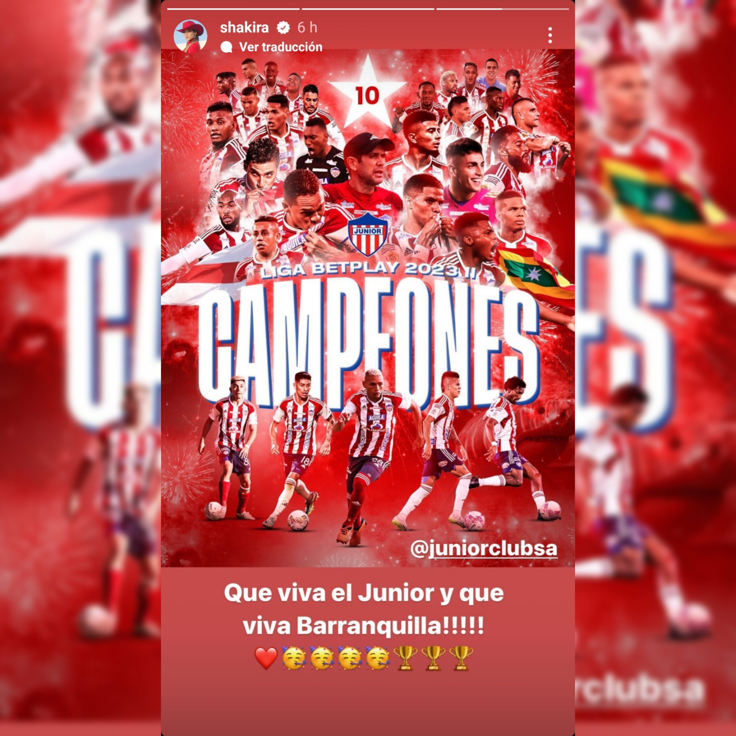La noticia de que el Junior era el campeón de la Liga Betplay 2023 II se esparció cómo la pólvora, tanto que la barranquillera, con sus caderas de oro, publicó desde sus redes “Que viva el Junior y que viva Barranquilla” festejando la décima estrella.