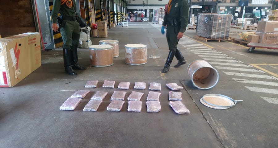 En esta oportunidad, un adiestrado canino, “Rambo”, logró olfatear 4 cilindros de cartón en su interior 59 kilos de marihuana, en una empresa de envíos ubicada en la vía 40.