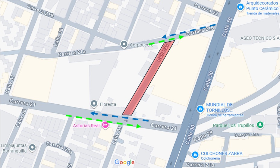 – Los conductores pueden usar como rutas de desvíos las carreras 21 y 21B.