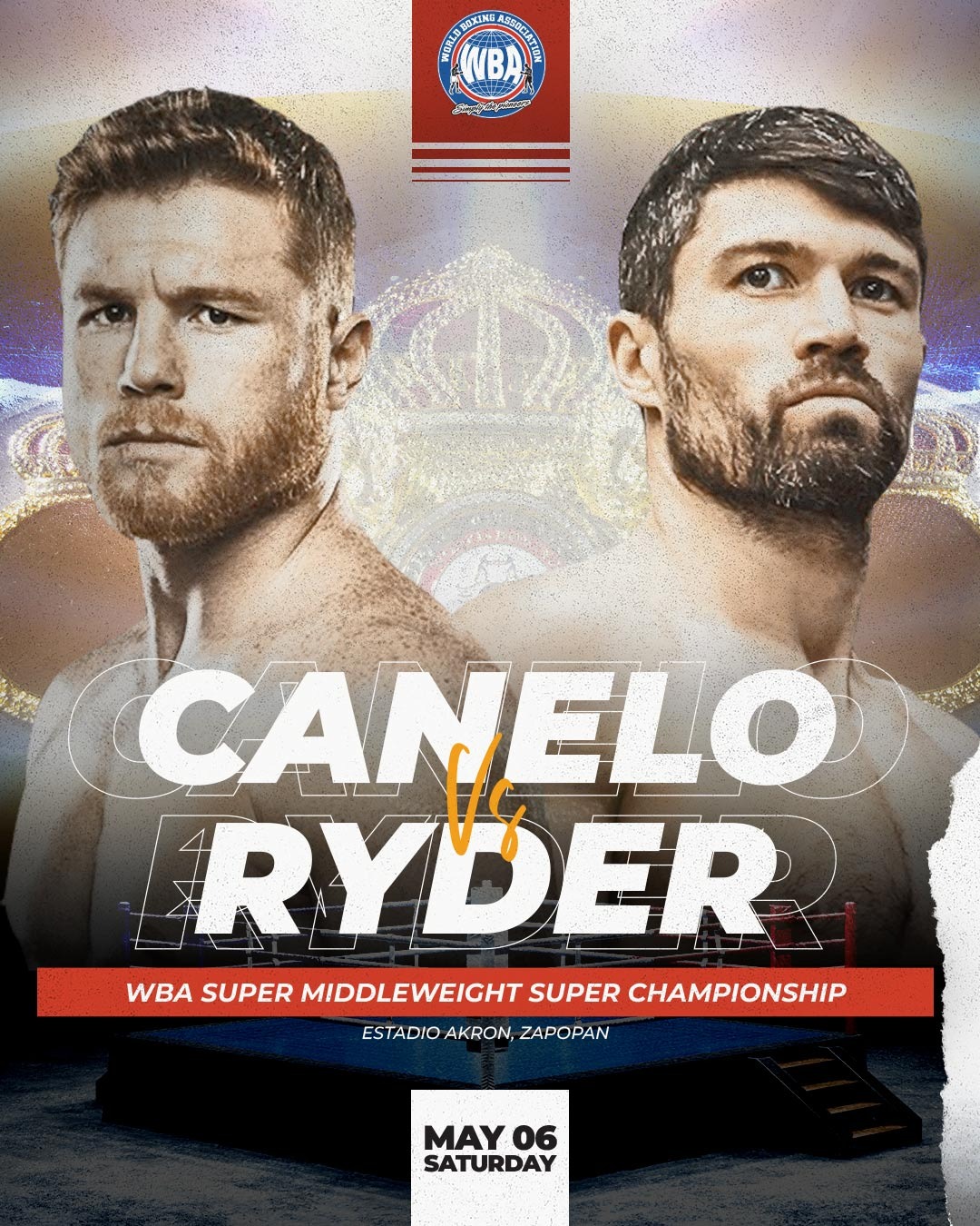 Álvarez cuenta con 58 triunfos, 2 derrotas, 2 empates y 39 nocauts. Ryder tiene 32 victorias, 5 reveses y 18 definidas antes del límite.