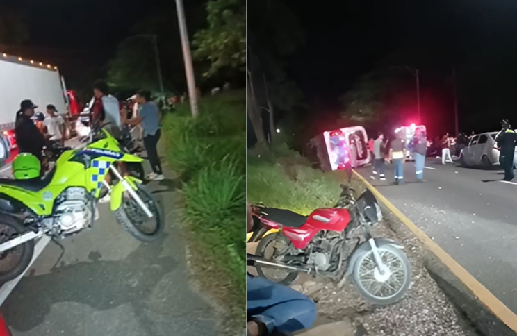 De acuerdo con versiones preliminares, el siniestro se originó cuando el conductor del vehículo intentó esquivar otro accidente que se había registrado metros más adelante. La maniobra de evasión provocó que perdiera el control, lo que derivó en que el bus saliera de la vía y quedara recostado sobre un costado, en medio de la oscuridad de la carretera.