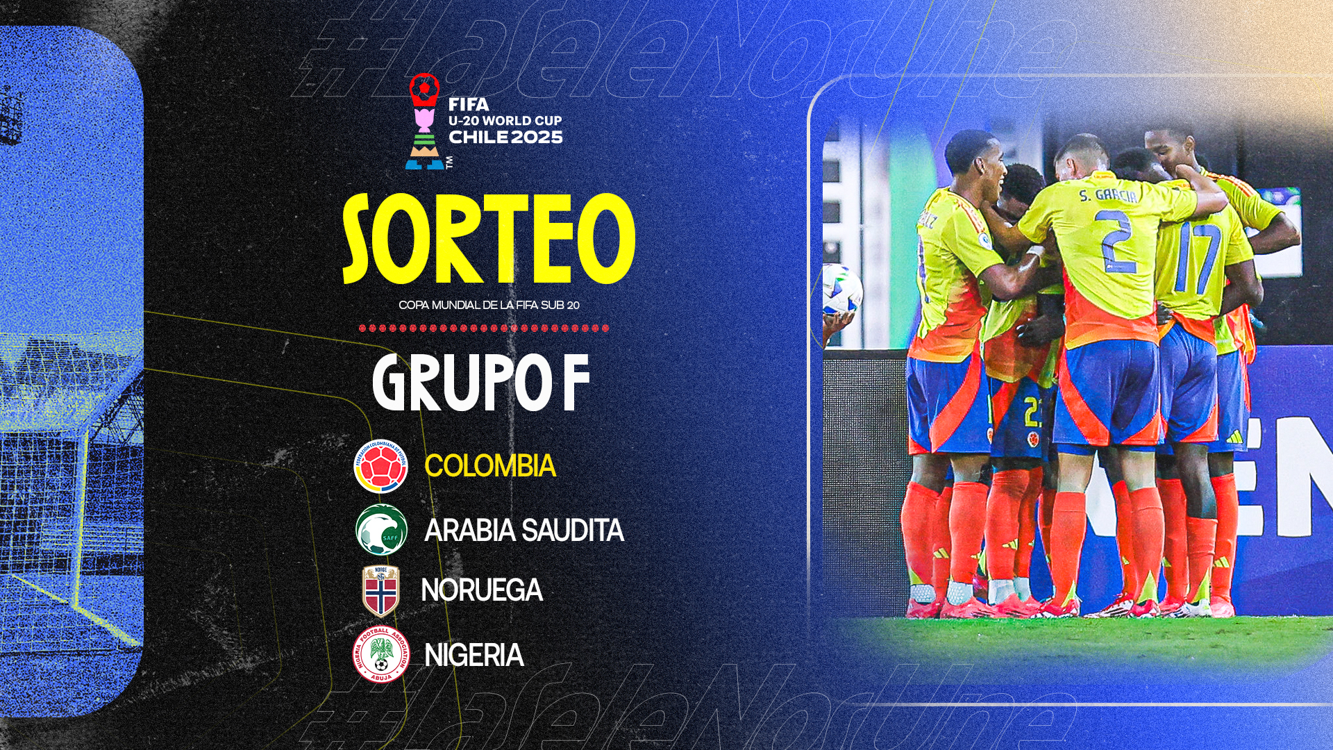 El sorteo oficial de la Copa Mundial Sub-20 de la FIFA Chile 2025 se llevó a cabo el 29 de mayo de 2025, definiendo los grupos del torneo que se disputará del 27 de septiembre al 19 de octubre de 2025. El evento se realizó en Santiago de Chile. Colombia quedó en el Grupo F junto a Nigeria, Noruega y Arabia Saudita.