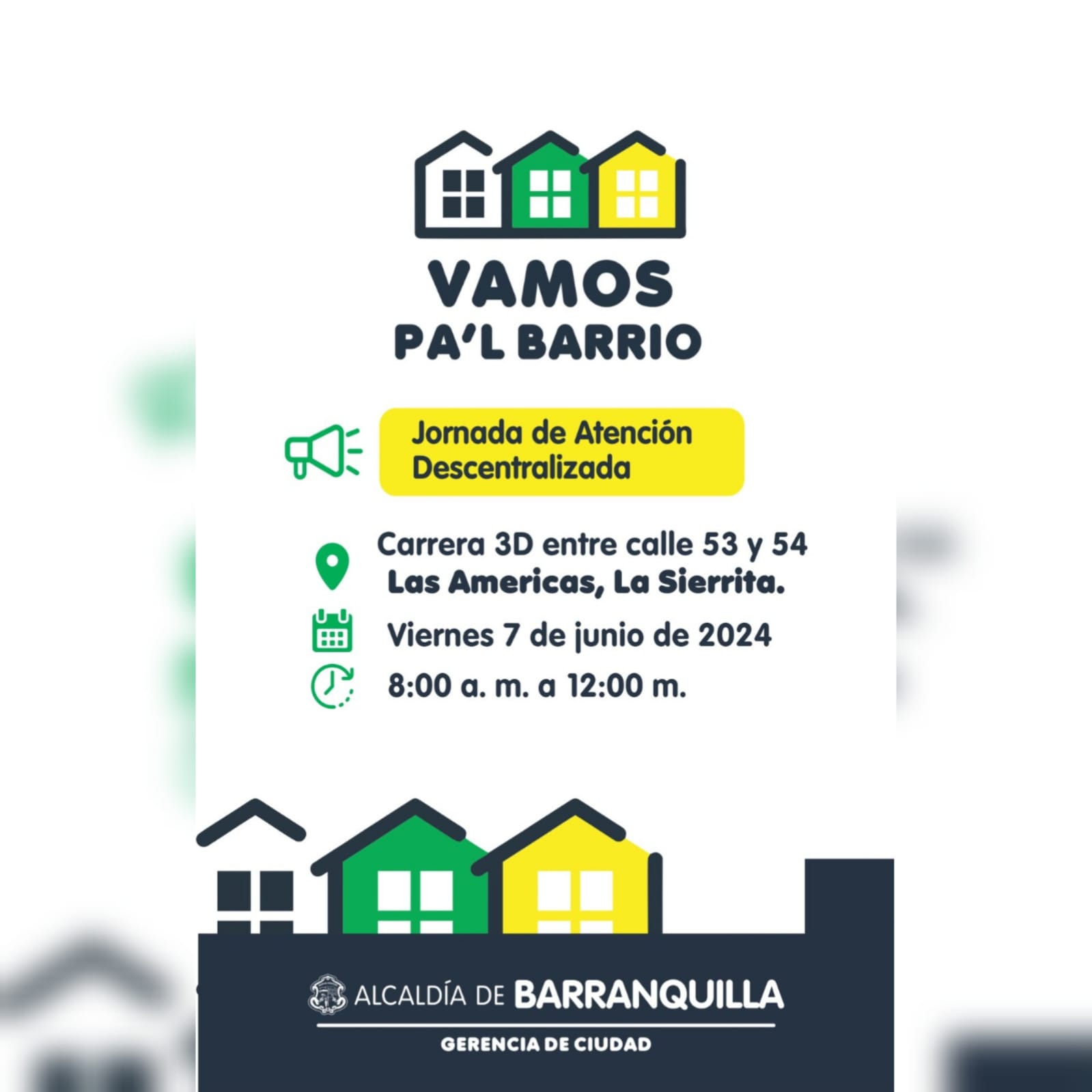 La feria Vamos Pa’l Barrio de la Alcaldía de Barranquilla llega este viernes con su gran oferta institucional a los barrios Las Américas y La Sierrita en la Carrera 3D entre la calle 53 y 54.